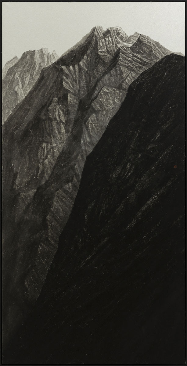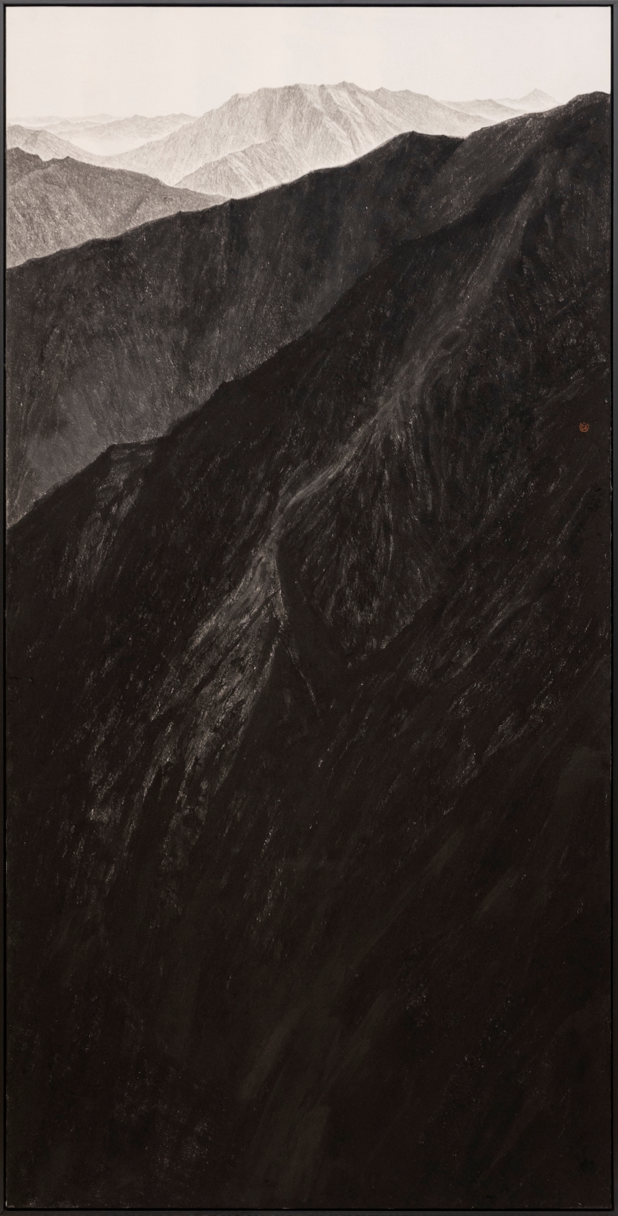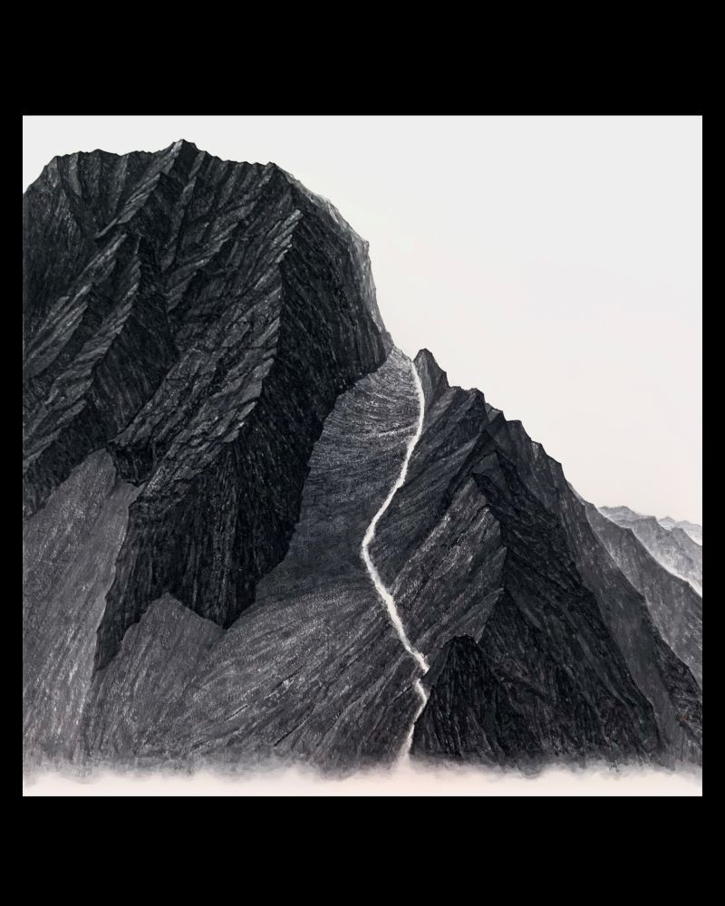 自2020開始登山以來,運用了水墨、楮皮紙及高知麻紙,來表現台灣高山上裸露銳利的山體岩塊,反覆的堆疊筆觸表現連綿的高山箭竹草原。以親身經歷的感官經驗來描述一種人的內在風景不停交流的感受,使山景描繪與自我生命產生共構的關係。