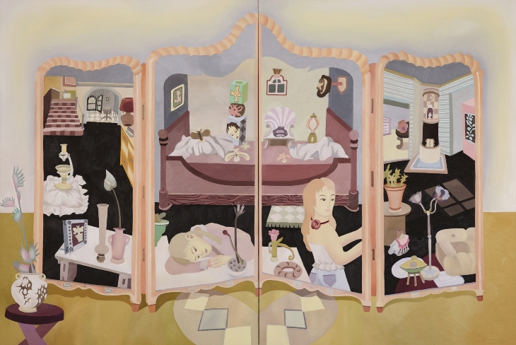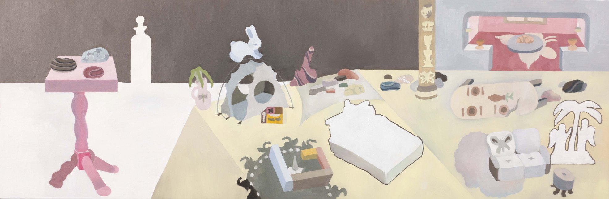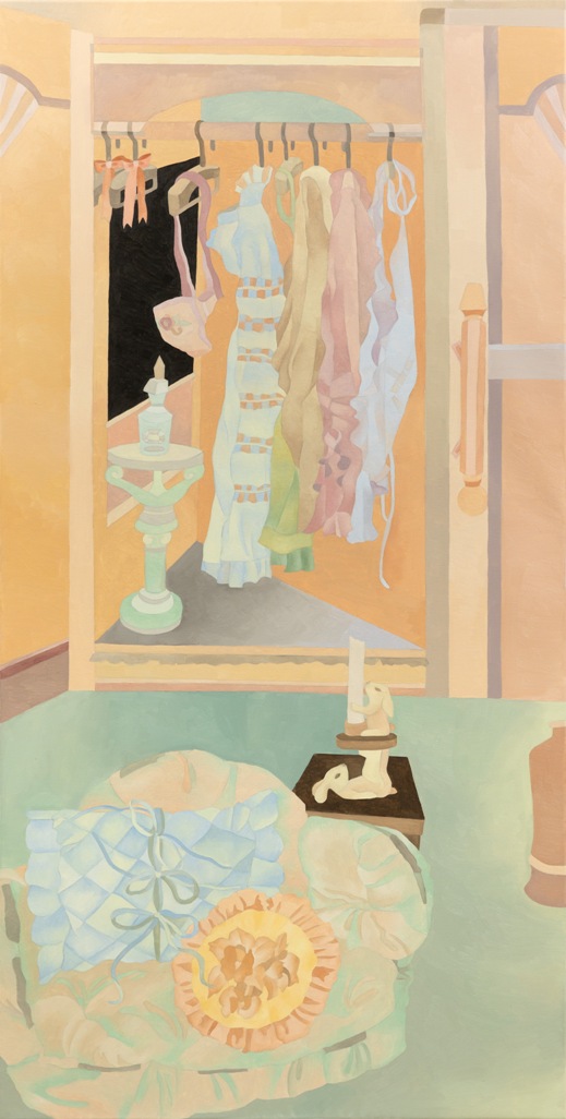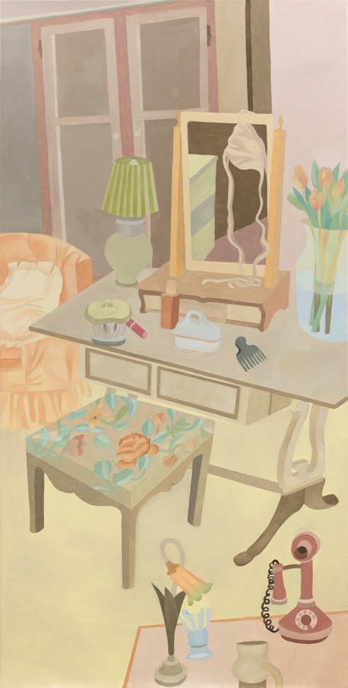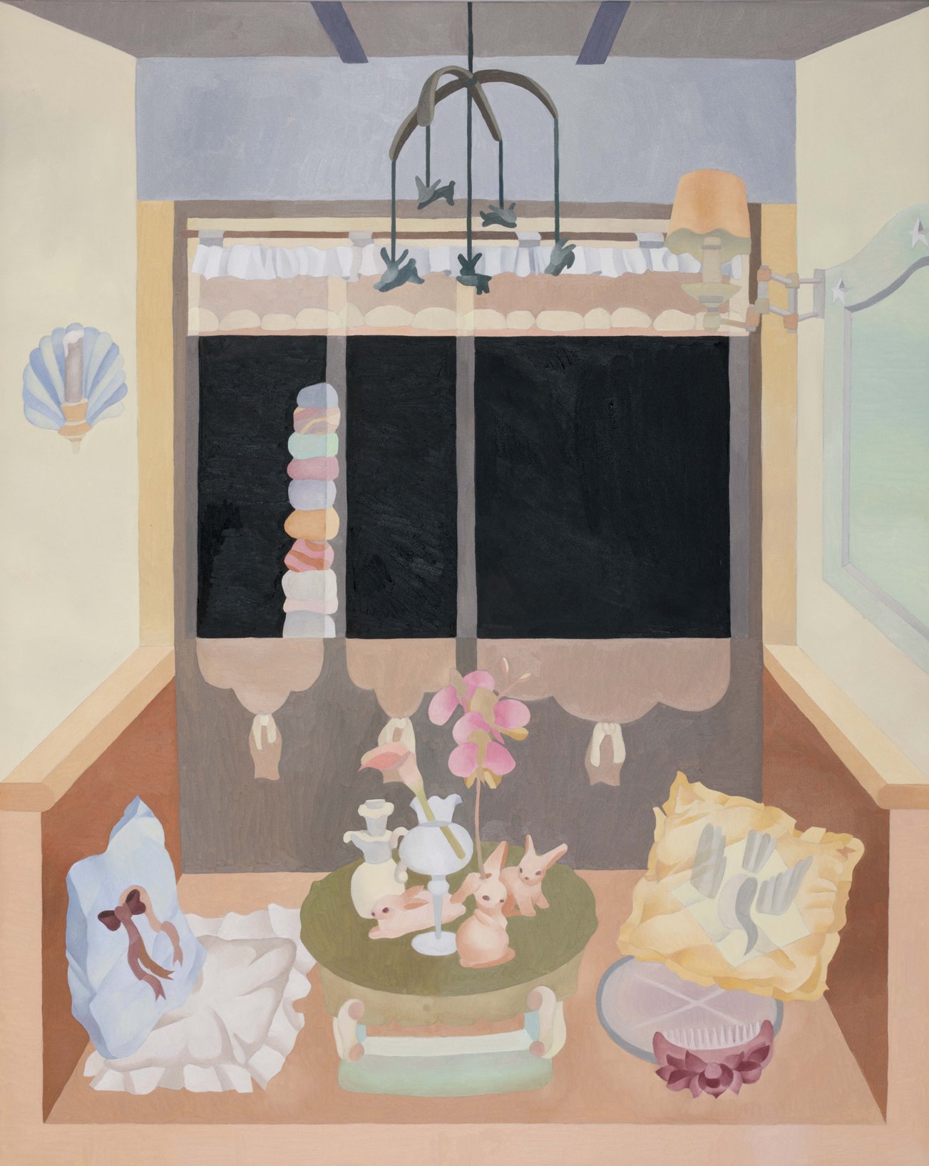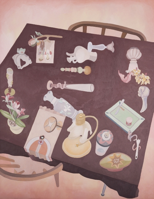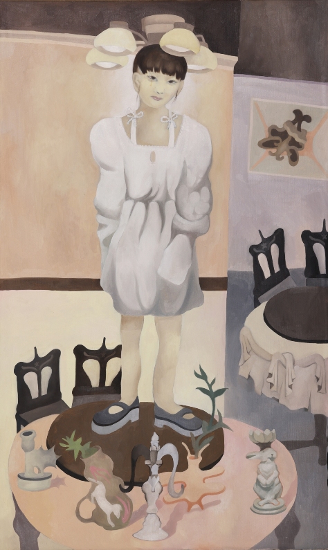 生於2000年,目前就讀於國立高雄師範大學美術學系研究所,以油彩描繪女子居室為主,透過柔和內斂的灰色調、淺色調表達圍繞女性日常生活中身體、家庭等常見的經驗與生活環境,探討女性的身份、權利和性別議題,藉由符號化的圖像如月亮、花朵、古物相框、香水瓶、陶器等物件詮釋女性的多樣選擇與可能性,畫面中各式各樣的圖形和裝飾物都是以二十初頭的女性看見的、喜好的為主,周依潔自己想像中的女性生活空間,畫面就像是拼圖,各種破碎的圖騰和記憶總結再一起重新呈現的畫面,型態各異的容器也代表著不同當代女性面對生活的想法與深刻情感。