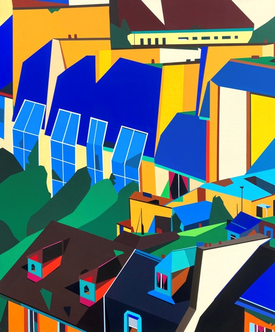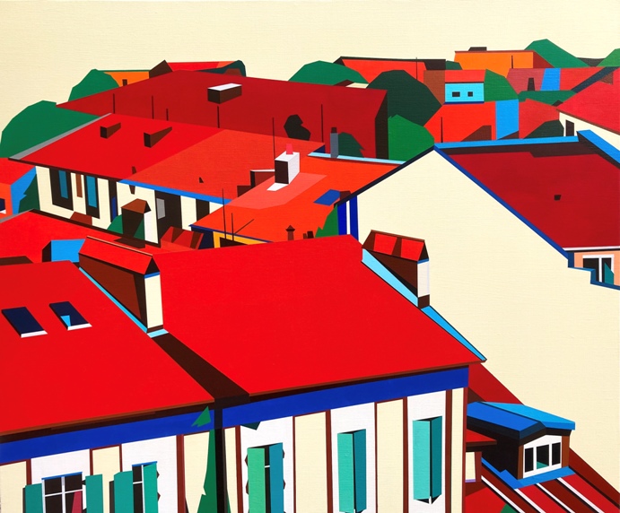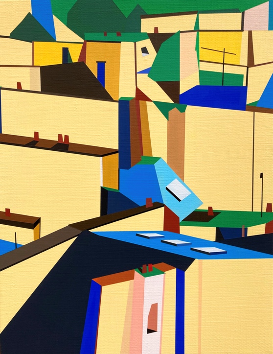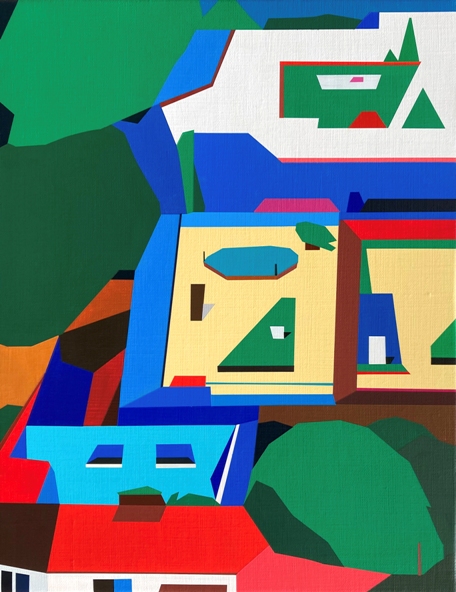 特別是這次呈現的鳥瞰繪畫作品,進一步聚焦於正午烈日照耀下的城市側面,試圖揭示Ryu Joohyun本人所著迷的形狀本質、創作中逐漸發展的成果以及鳥瞰城市的輪廓。