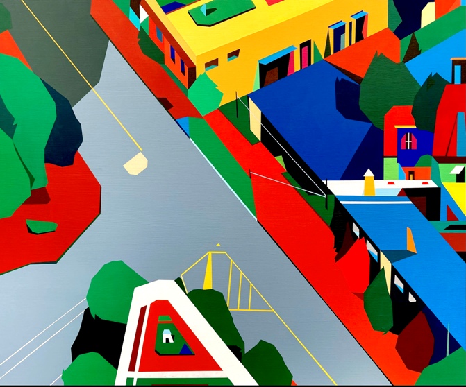 Ryu Joohyun所有作品都是以鳥瞰的視角創作。他對這種鳥瞰和觀察的態度感到著迷,透過與視覺藝術的交叉來尋找作品的來源。鳥瞰繪畫作品是從更近距離地觀察藝術家本人饒有興趣地觀察的城市這一面的態度開始的。