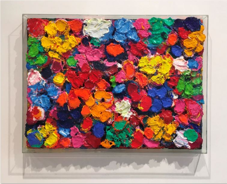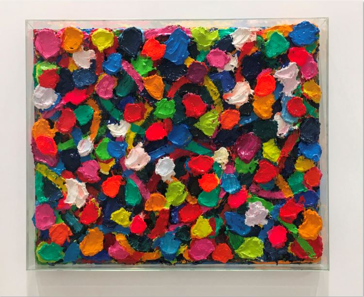 鄧國源作品「在花園No.18」 壓克力顏料,透明罩。60x80x5 cm