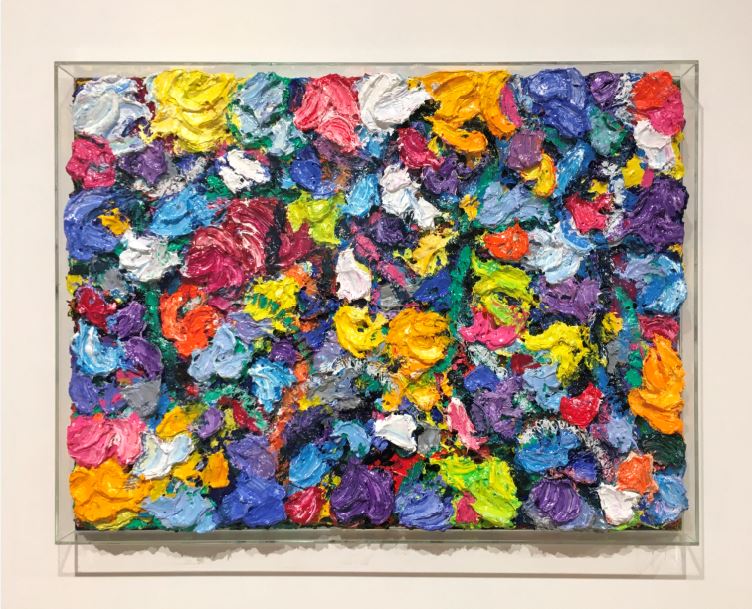 許益謙:鄧老師的創作核心很清楚,作品中堆積的不只是顏料,而是像情感的寄託、生活中的喜怒哀樂等。談到鄧老師的媒材,我特別喜歡2016年的裝置作品「諾亞花園」,作品透過鏡子與動力裝置,表現了虛幻、現實與自然的交錯,其實鄧老師創作了那麼多,就是在建立如上所述的三角關係;自然、人、藝術之間的距離。