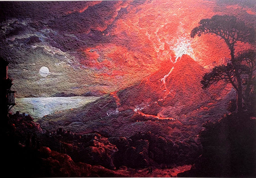 Vik Muniz 使用製造顏料的化學粉末,重新詮釋英國月色風景大師Sebastian Pether的「維蘇威火山」,作品尺寸 152x101cm。
