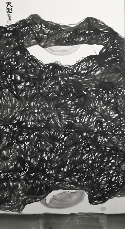 畢生致力於水墨藝術的樊洲,走在一條與眾不同的創作路上,樊洲於1992年開始隱居在中國陝西的終南山,長年研習太極拳心法和古琴音韻,透過日常生活感受大自然的律動。歷時三十年的隱居生活,他提出「物我相忘,因緣生發」的創作理念,開啟獨樹一格的曲線交織畫法,為中國水墨開啟新視野。本次「月光」為主題的水墨作品,樊洲以其獨特畫法描繪了月光下的終南山,靜謐的意境加上水墨交疊的線條猶如古琴之音,清新而悠揚,終南山在他的筆下展現了恆久之美。