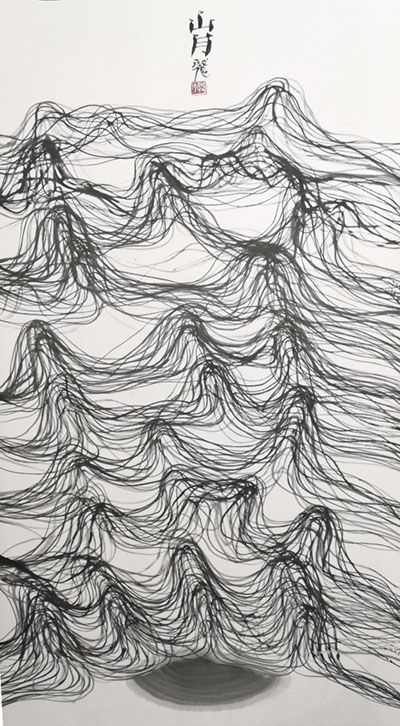 樊洲以其獨有的交織畫法描繪了月光下的終南山,展現了終南山的靜謐與恆久之美。