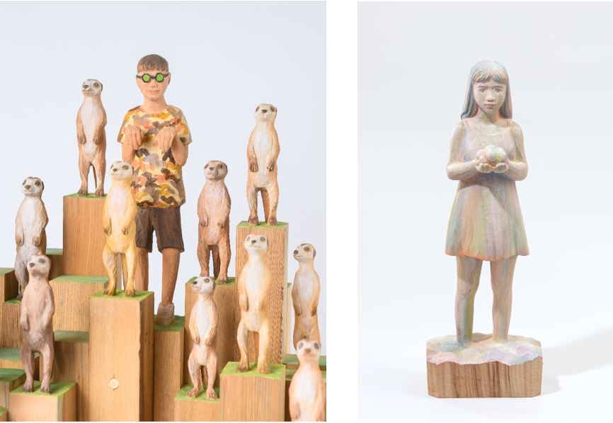 畢業於台灣藝術大學雕塑碩士的江基名,擅長使用細膩木質肌理的樟木與檜木作為雕刻媒材,作品中富含對於日常生活感悟的轉化,鑿痕間透露出真摯情感。《微型場景》系列是江基名的代表性創作,作品「街燈下的遙視」表現了現代都市人所面對的寂寥與迷惘。而全新創作《浮雕系列》,以杉木溫潤的色澤,悄然融合了傳統浮雕與平面肖像繪畫,人們的複雜情感在江基名的作品中生動展現。