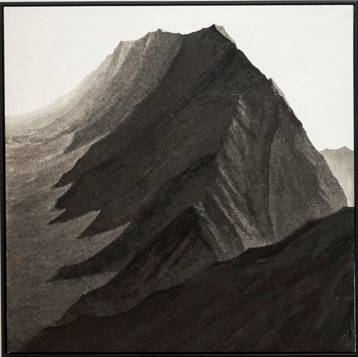 自2020開始登山以來,運用了水墨、楮皮紙及高知麻紙,來表現台灣高山上裸露銳利的山體岩塊,反覆的堆疊筆觸表現連綿的高山箭竹草原。以親身經歷的感官經驗來描述一種人的內在風景不停交流的感受,使山景描繪與自我生命產生共構的關係。