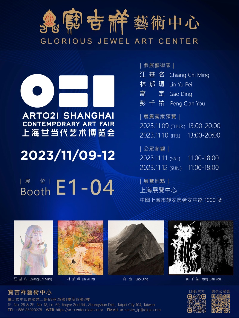 寶吉祥藝術中心於2023年上海ART 021 上海廿一當代藝術博覽會推出藝術家江基名、林郁珮、彭千祐及高定的最新創作,並囊括木雕、水墨、膠彩、壓克力等多種媒材類型,呈顯創作之於生活記憶及情感的聯繫。向觀者呈現藝術創作無非是種關於個人生活的獨特載體,銘記著某一時間段下的思緒、情感、經驗等種種。