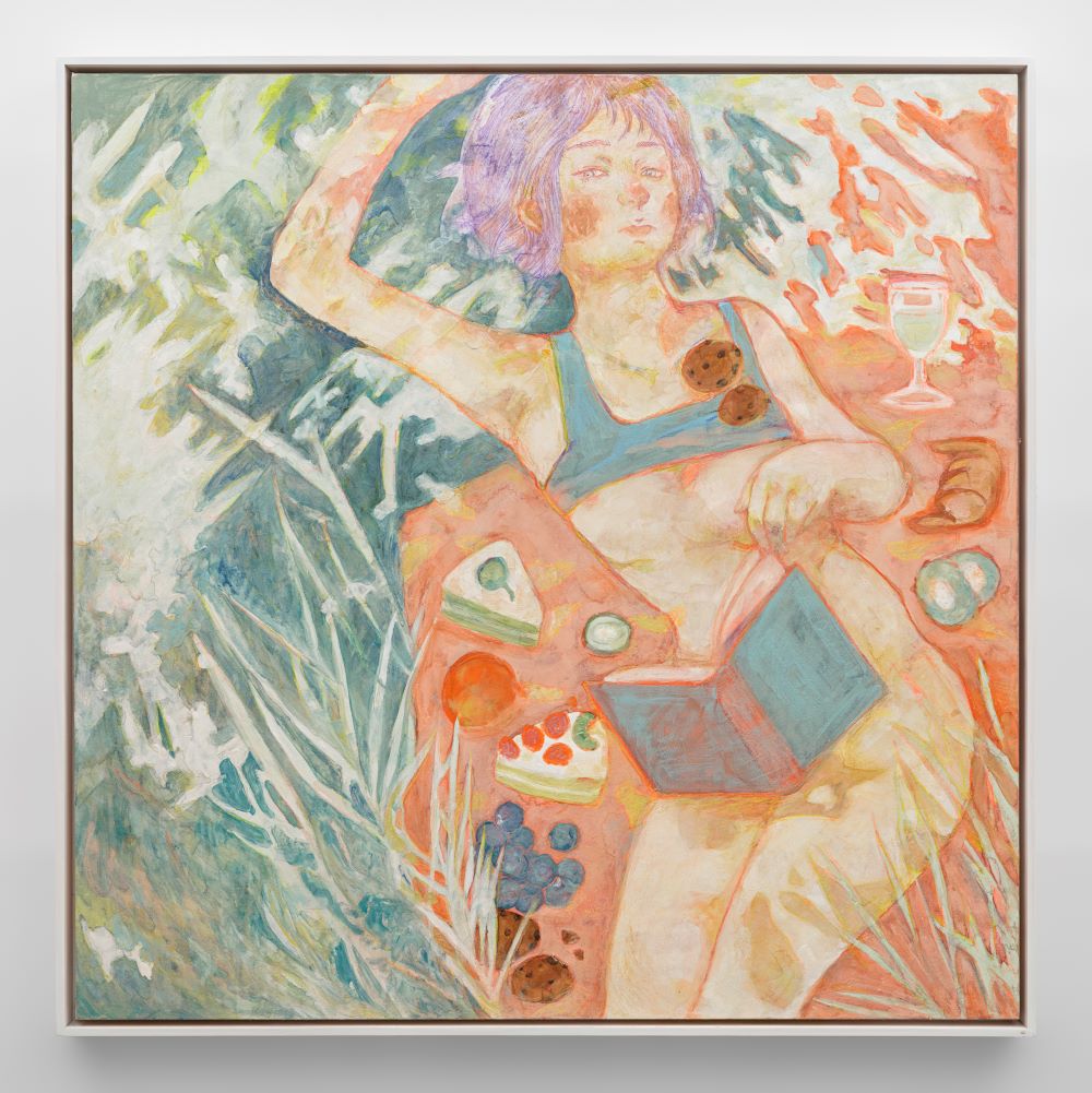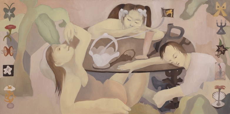 洪永欣的作品類似日本畫,創作媒材多是膠彩和壓克力顔料,以ㄧ種象徵主義的風格,運用豐富協調的色彩,或是短急的筆觸堆砌出作品的細節,她的題材多是傳達少女慵懶的氛圍,在自己的生活小空間,毫不介意他人的眼光而自在且自信的活著。