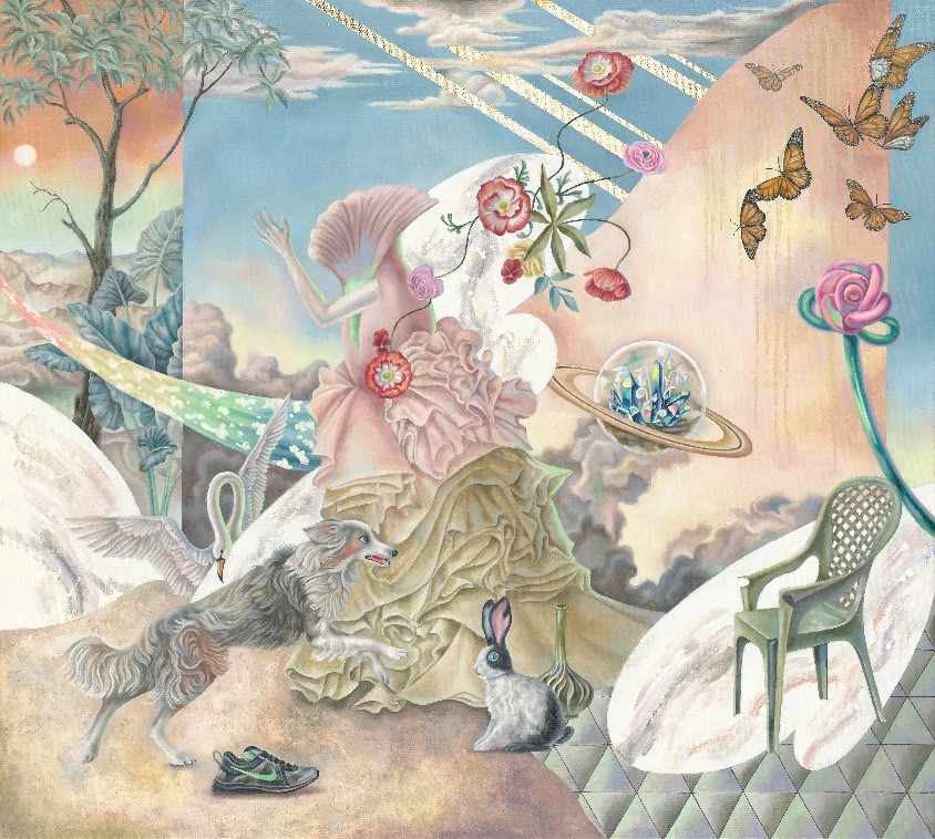 光線中綻放的櫻桃色│歐靜雲│2022│100cm × 90cm│油彩、金箔於畫布
