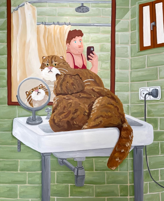 Kang SuJung 擅於表現探索日常生活或現代社會現實的主題,通過自己獨特的暖色調繪畫反映社交媒體受到演算法影響下的生活,並在作品中加入了個人故事和想像。