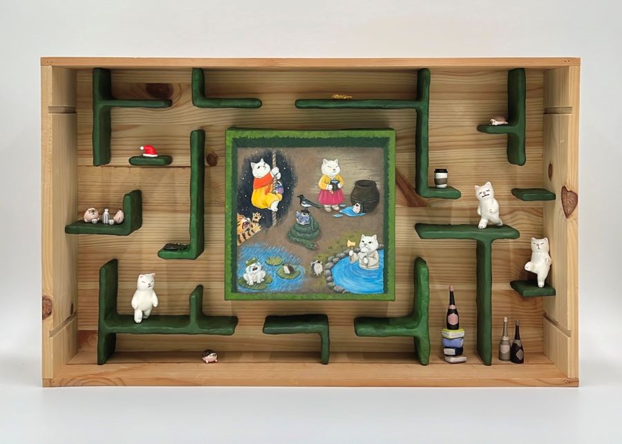 Yuja認為生活充滿了不確定性,有時我們不可避免地會迷失在“森林”中。當我們意識到自己的局限性,忽視自己的目標和起源,忽視周圍的小事時,我們會感到沮喪。然而,當我們冷靜下來仔細觀察時,即使在混亂中,我們也能找到我們獨特的自我。在我們困惑的日子里,一路上的所有經歷都成為我們生活的一部分。Yuja畫作中的花朵、樹木和女孩看似嬌嫩而脆弱,但在她看來,它們象徵著成長的空間和無限的潛力。藝術家希望邀請大家進入這些治癒的場景。