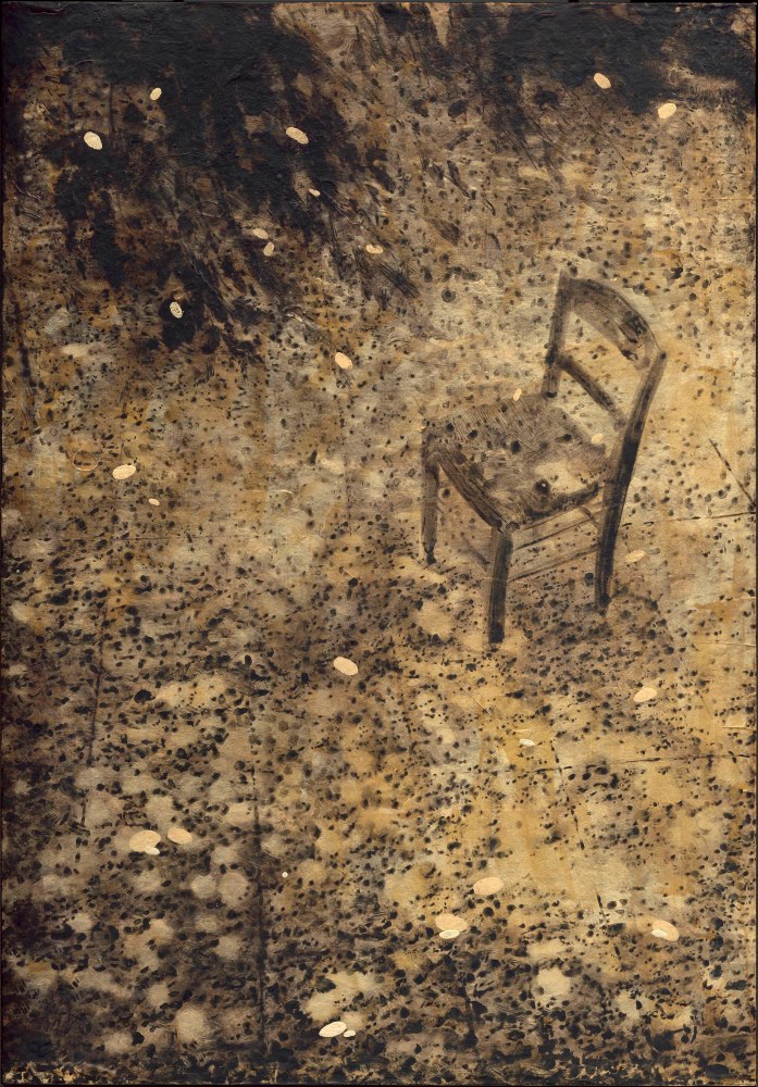黃至正以對金、銀箔材等複合媒材及視覺光影的精妙運用而聞名。他的創作結合繪畫、拼貼與雕塑語彙,遊走於動態與靜態之間,探索情感、記憶與感知的多重層次。黃至正將細膩的媒材運用與極富空間與敘事感的構圖融為一體,使作品在金屬箔材的閃耀與消隱的光線變化中,呈現時間流動與心理感受的交織衝突。