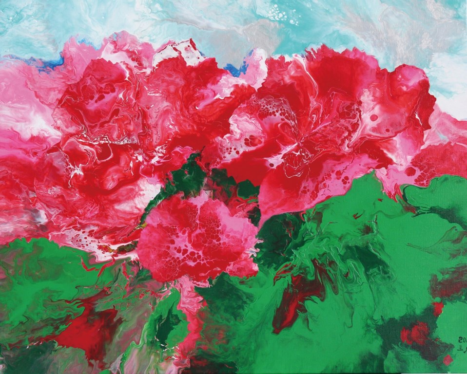 而蔡玉葉女士的另一個特色則是畫面色光,飽和的彩度和明暗對比給人深刻印像,用色不拘泥固定色系,都是她當下心念的直覺,作品中經常出現令人驚豔的色彩組合。她是以抽象繪畫表達自我的素人畫家,與學院專注畫面的抽象畫不同,她表達的是生活中觀察到的細微光影和人生體悟,以獨特的洞察力將自然與心念轉化成畫面。抽象畫給予她更自由豐富的表達空間,兩者結合,使她成為一位十分獨特的畫家。
