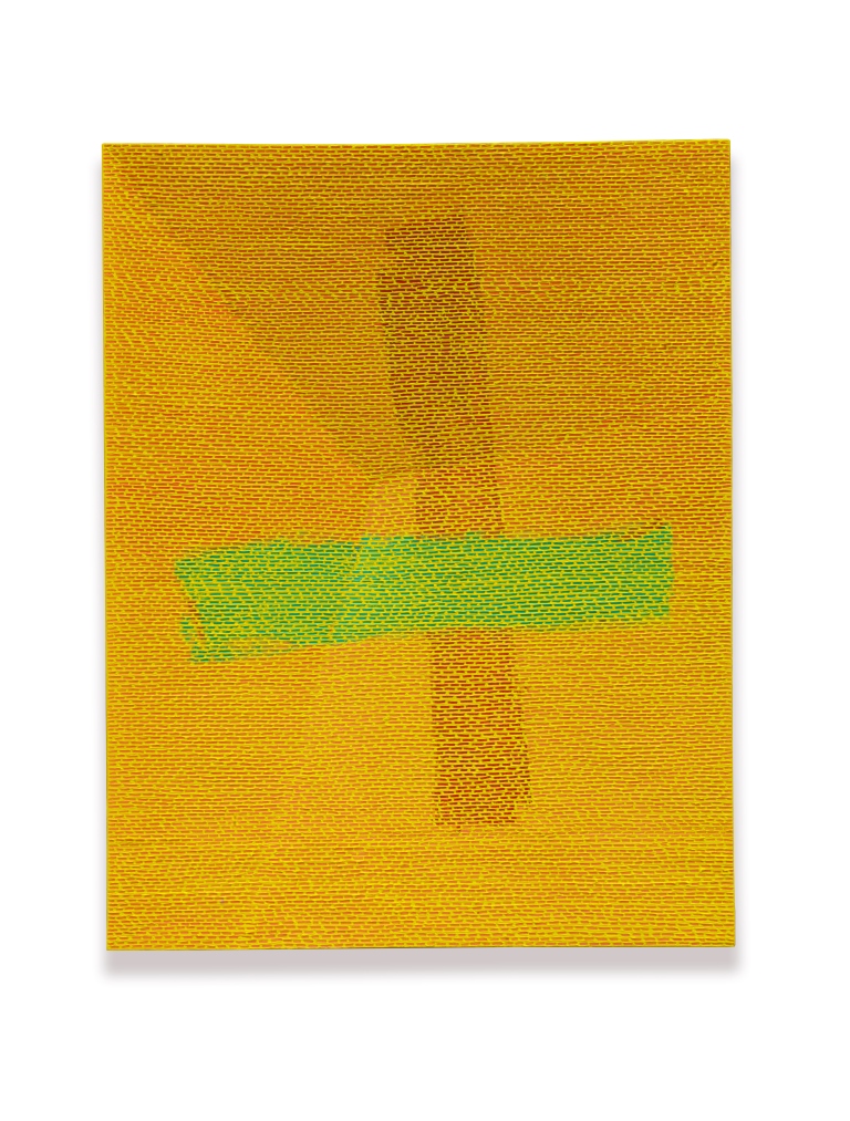 王小松的《空層》擯棄釋義,而通過分裂的空間結構去“呈現”。作者放棄了從甲到乙、由上而下的“邏輯”,卻讓自己置身於多層次的“風景”中,去呼吸、聆聽、感受那個活生生的透明感。而2019年,畫家今日重新再創作時,一方面繼承了原有的理念、另一方面、更在探討時間對“亂碼”在當下所呈現出的不同語境的反思。