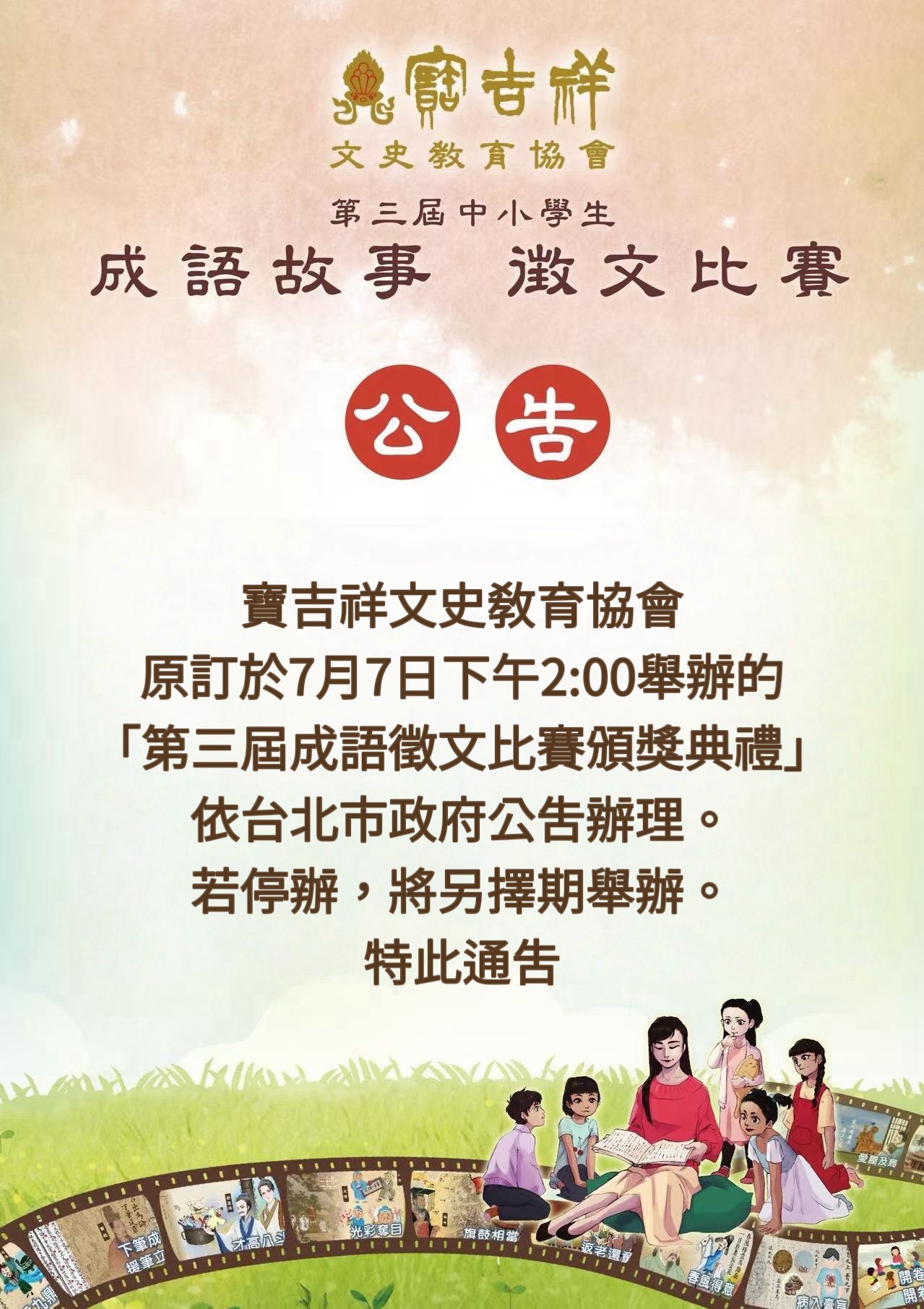第三屆成語徵文比賽頒獎典禮」依台北市政府公告辦理