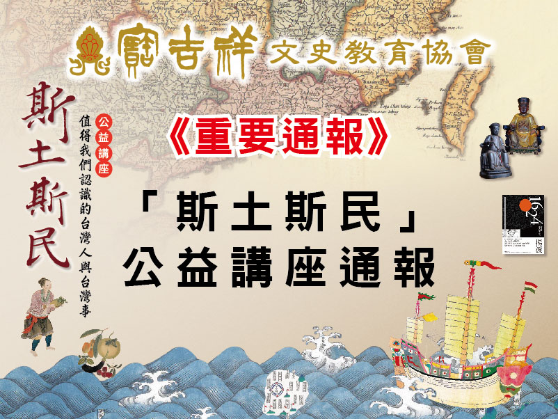 本會因應Covid-19疫情升溫,「斯土斯民-值得我們認識的臺灣人與臺灣事」系列講座第三講: