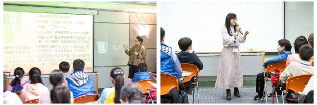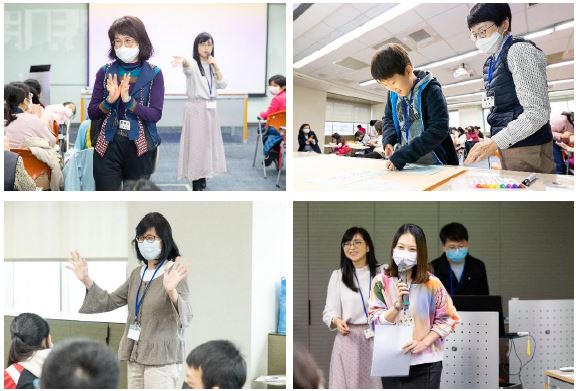 姚瀞惟老師(上左)、陳培文老師(上右)、陳伊婷老師(下左)、廖伶潔老師(下右)帶領學員,發表各組自行設計的朗讀成果。