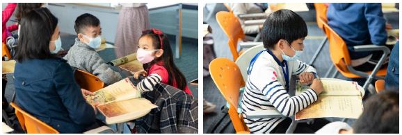 本梯次年紀最小的學員徐豐德,在父母伴讀下參加朗讀營。照片所示,他正擊拍響板、繪製詩意圖,他也獲得協會頒發的「第一張學習獎狀」。