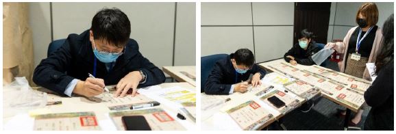 助教張家偉老師與工作人員一一謄寫學員獎狀