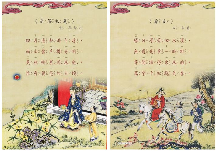 第二梯次學習及朗誦唐宋詩4首:宋 司馬光(1019-1086)〈居洛初夏〉、宋 朱熹(1130-1200)〈春日〉、唐 李涉(生卒不詳)〈登山〉、唐 杜牧(803-852)〈秋夕〉。