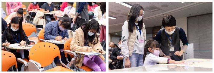 本梯次年紀最小學員陳逸文,與母親一同參加課程,翻看講義圖片,大方回答問題、參與朗讀,獲得協會頒發的人生第一張學習獎狀。