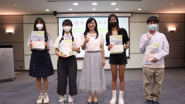 徵文比賽總召集人 李正芬常務理事與國中組得獎者合影
