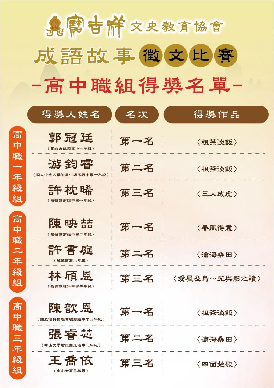 第一名 陳映喆(高雄市高雄中學 二年級)