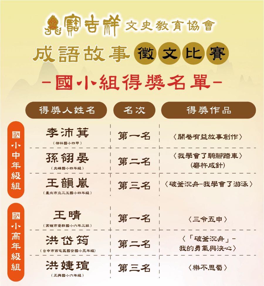 第三名 王韻嵐(臺北市立三玉國小 四年級)