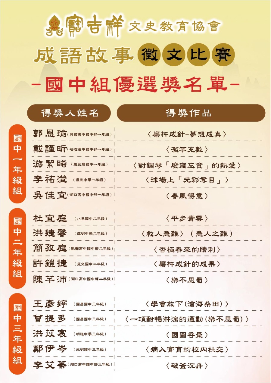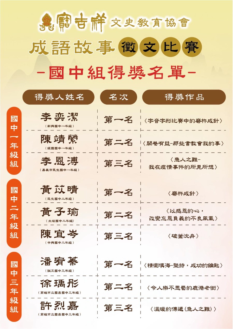 第二名 徐瑀彤(雄市立國昌國中 三年級)