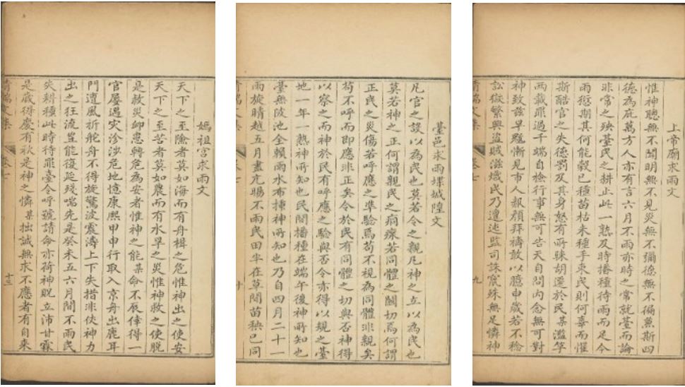 陳璸〈上帝廟求雨文〉、〈臺邑求雨牒城隍文〉、〈媽祖宮求雨文〉