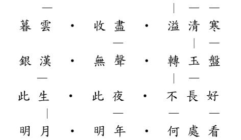 這首〈中秋月〉寫在蘇軾徐州任官時,他的弟弟蘇轍到徐州團聚,兩人共度了中秋佳節。在此前一年,蘇軾還在密州,中秋時節想念蘇轍,寫下名作〈水調歌頭〉,留下「但願人長久,千里共嬋娟」的千古絕唱,如今兄弟二人終於久別重逢,共賞明月,這是何其美好的事。詩以暮雲收盡起頭,雲氣的舒卷變化盡在其中。雲散後,秋夜被明月映照得分外清亮寒涼,此時星河雖然無聲,但高懸的滿月如晶瑩剔透的玉盤在空中緩緩移動,彷彿可見悠遠綿長的時空流轉在蒼穹之中。在意境如此空明的中秋夜,與親人相聚,一切是如此美好,但世事無常,蘇軾不禁喟嘆:此生此夜會長久嗎?明年此時我們又將身在何處呢?〈水調歌頭〉云:「人有悲歡離合,月有陰晴圓缺,此事古難全」,正是詩人這無限感慨的最好註解。這首中秋詩不僅詠月,也寄寓了無盡的離別之情。