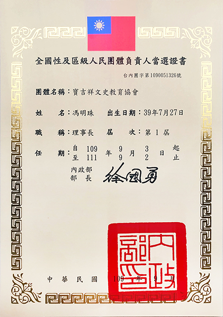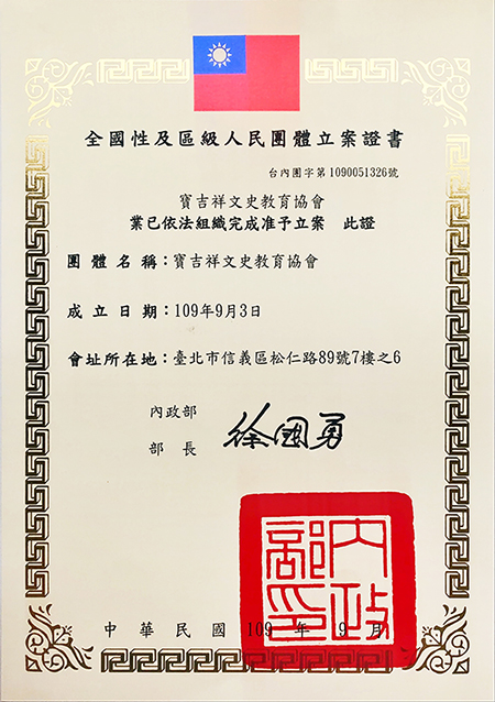 寶吉祥集團總裁顏錚浩先生發起,推動成立「文史教育協會」。
