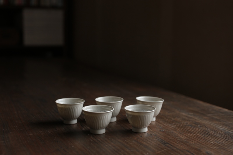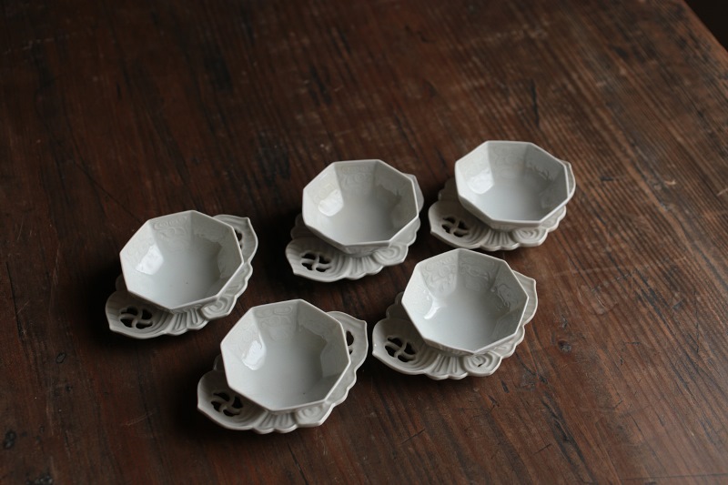 饕餮紋八角茶杯Ø7.8×3.4cm 泉山陶石