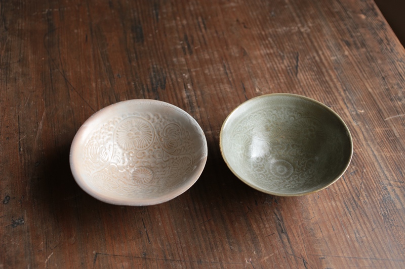 右:青瓷印花茶碗 Ø3.9ר15.7×6.5cm 頁岩
