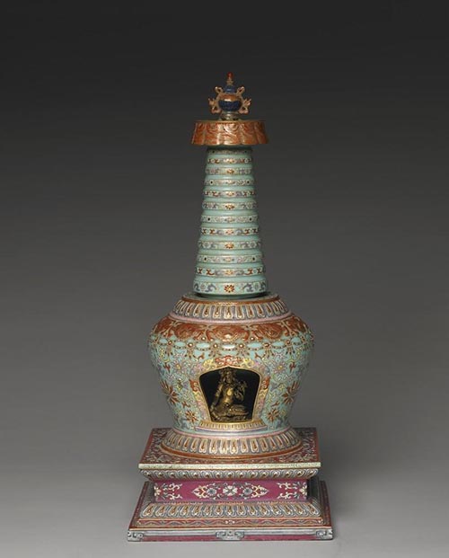 龕為乾隆時(1736-1795)景德鎮窯廠燒造,塔內銅白度母像為16世紀西藏作品。