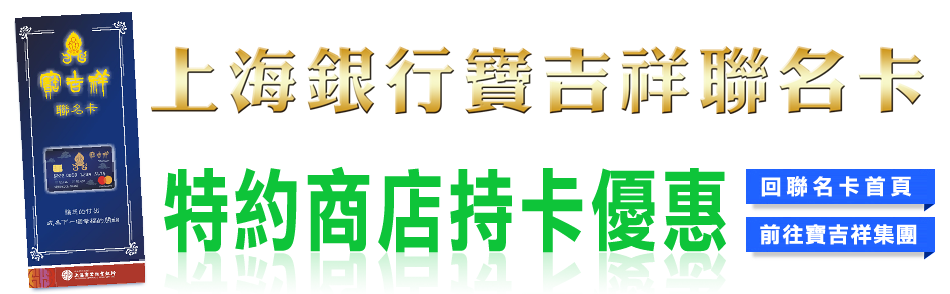 優惠內容:憑<寶吉祥上海銀行聯名卡> 至