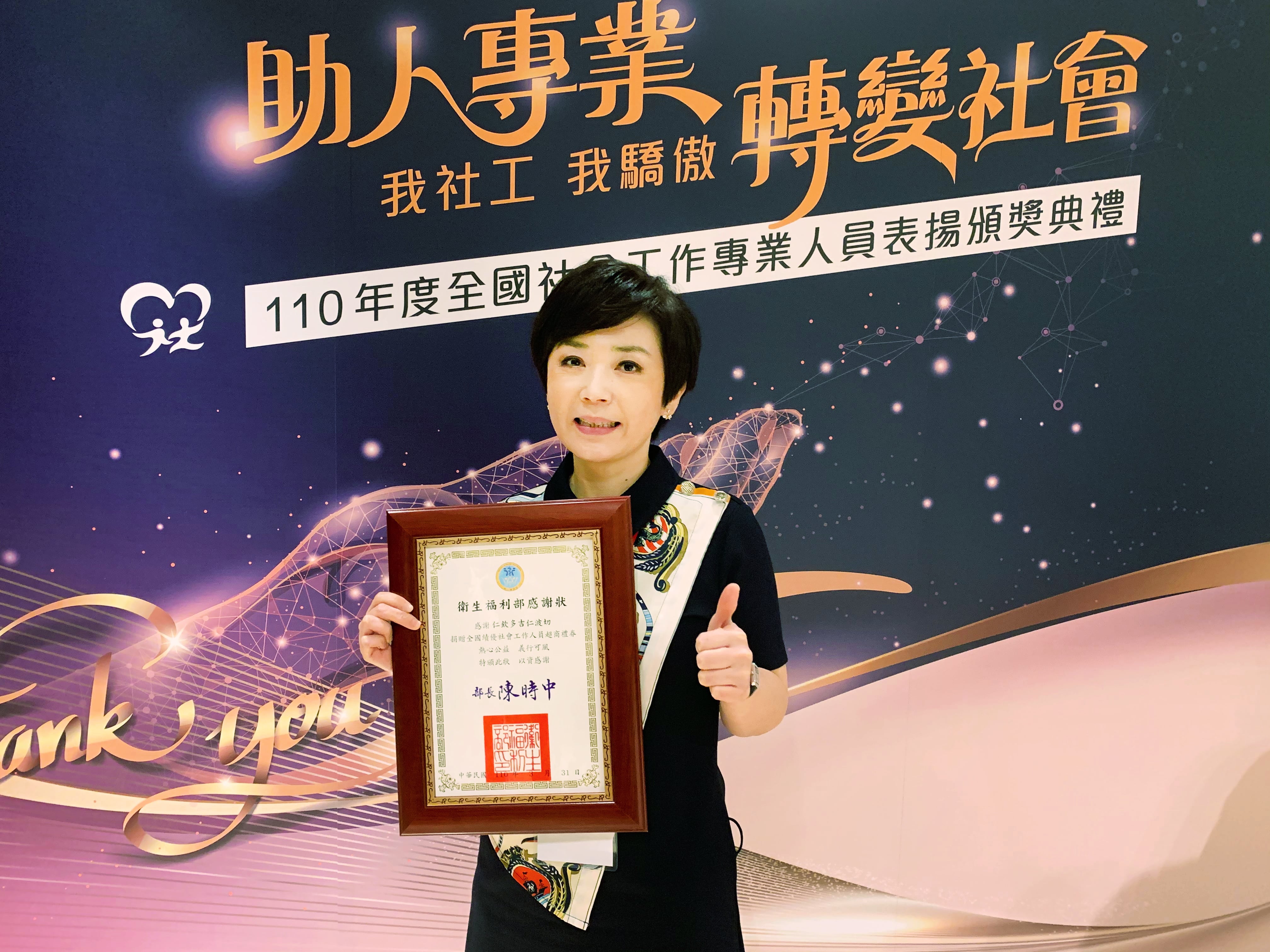 因應每年的國際社工日及4月2日臺灣「社工日」到來,110年3月31日衛生福利部於君悅酒店辦理「助人專業、轉變社會、我社工、我驕傲-110年全國社會工作專業人員表揚頒獎典禮」,肯定及鼓勵全國177位專業社會工作專業人員在社會福利服務推動上堅持與付出。
