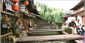 街の西にそびえ立つ蒼山と東に広がる湖を中心とした風景は、「山水如画」と賞賛される美しさです。ゆっくり観覧後は、ペー族の古い民家を訪れ、名物の三道茶歌舞踊を鑑賞します。その後麗江へと向かいます。