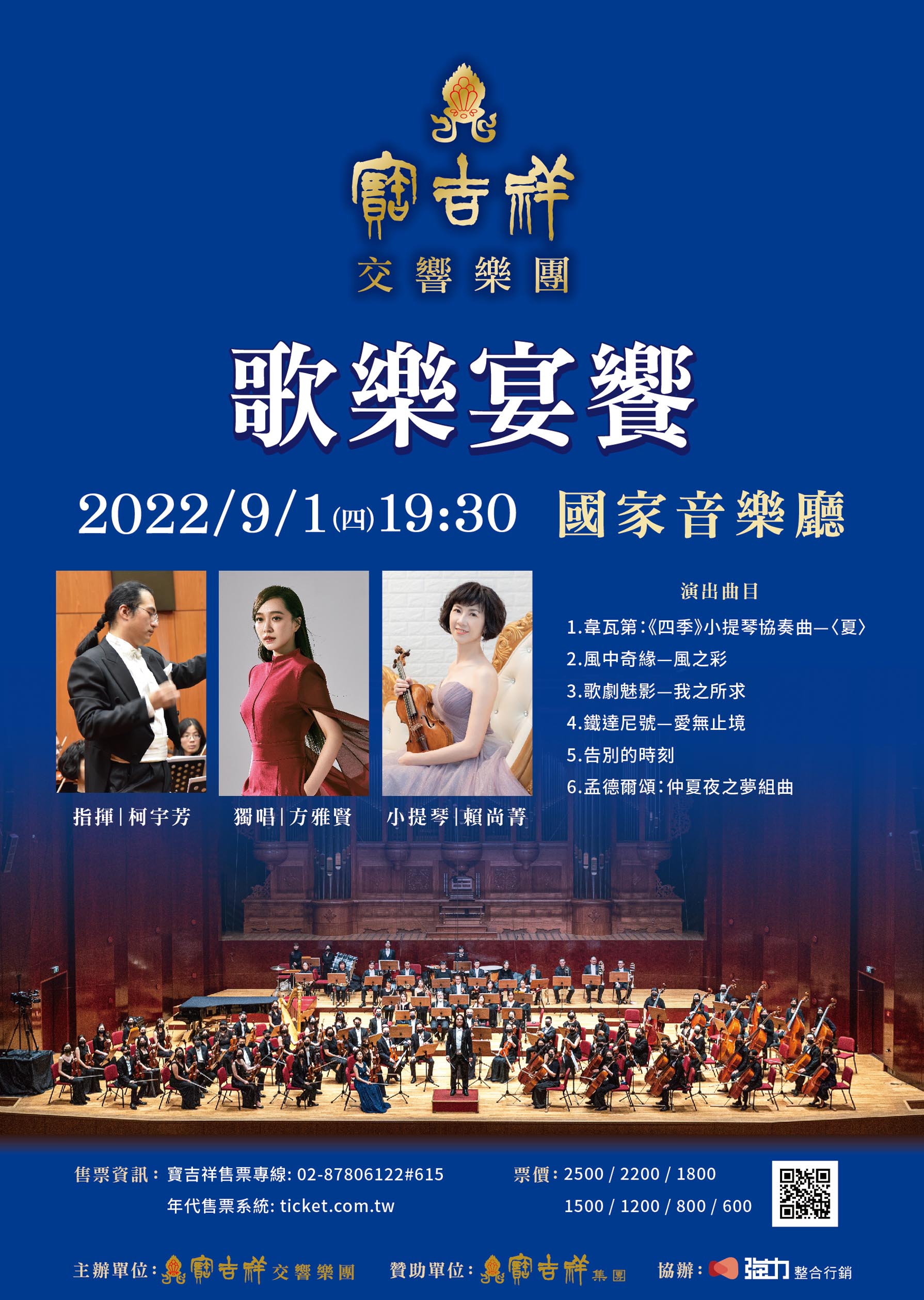 在夏日夜晚,寶吉祥交響樂團,帶您走進音樂殿堂,聆聽夏日「歌樂宴饗」。